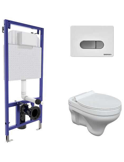 Комплект BERGES: инсталляция NOVUM, кнопка D7 белая/хром глянец, унитаз ALBIT S, сидение дюропласт Top Slim SO
