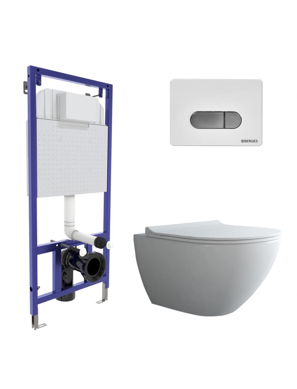 Комплект BERGES: инсталляция NOVUM, кнопка D7, унитаз PUMA Rimless 51 см, сидение дюропласт Toma Slim SO