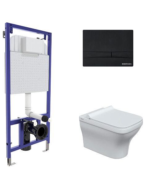 Комплект BERGES: инсталляция NOVUM кнопка F5 черная SoftTouch, унитаз Strati Rimless, сидение дюропласт Strati Slim SO