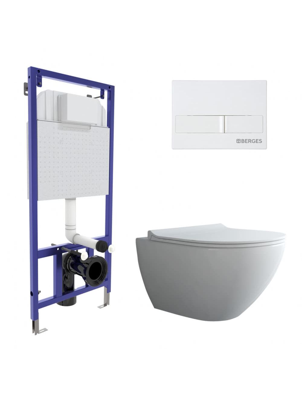 Комплект BERGES: инсталляция NOVUM, кнопка L1, унитаз PUMA Rimless 51 см, сидение дюропласт Toma Slim SO