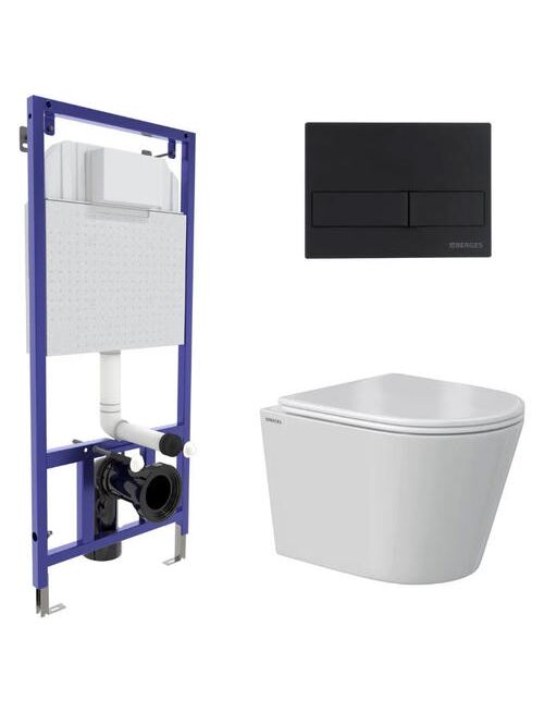 Комплект BERGES: инсталляция NOVUM кнопка L5 Soft Touch черная, унитаз VITA Rimless 49 см, сиденье дюропласт микролифт, быстросъём