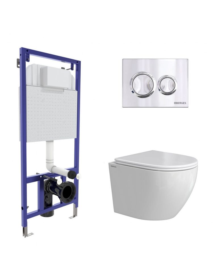 Комплект BERGES: инсталляция NOVUM кнопка O3 хром глянец, унитаз OKUS Rimless 49 см, сиденье дюропласт микролифт, быстросъём