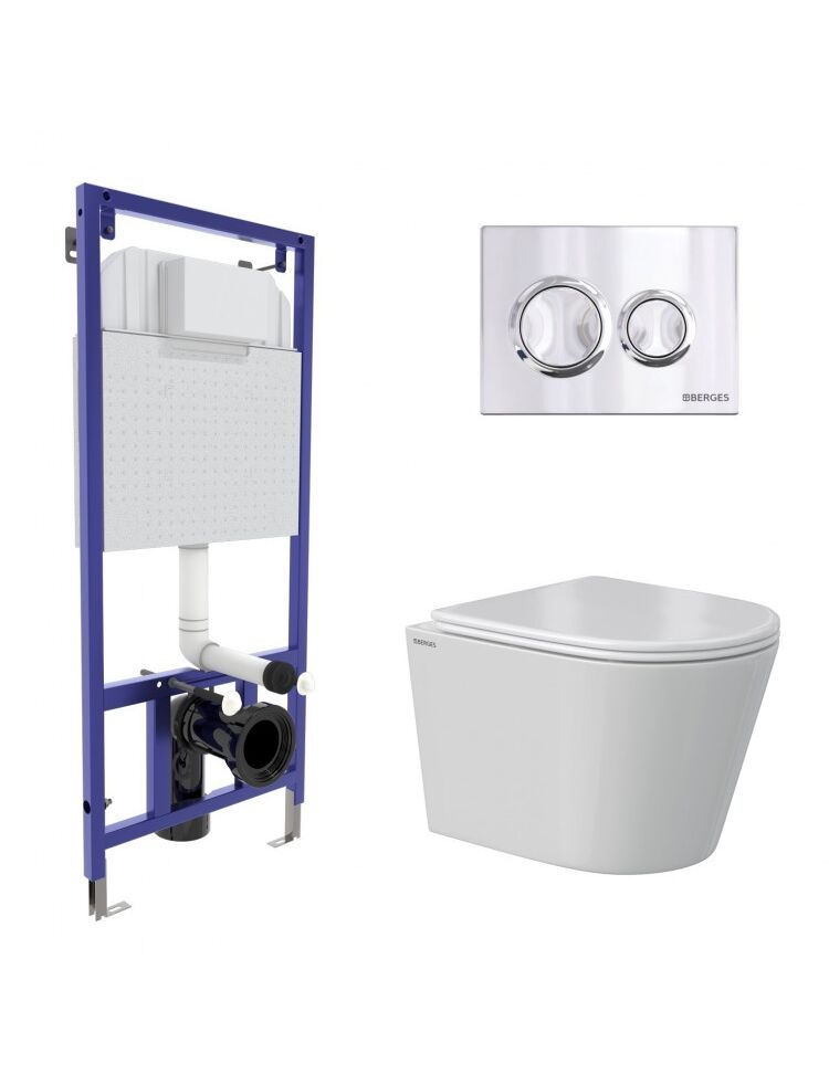Комплект BERGES: инсталляция NOVUM кнопка O3 хром глянец, унитаз VITA Rimless 49 см, сиденье дюропласт микролифт, быстросъём