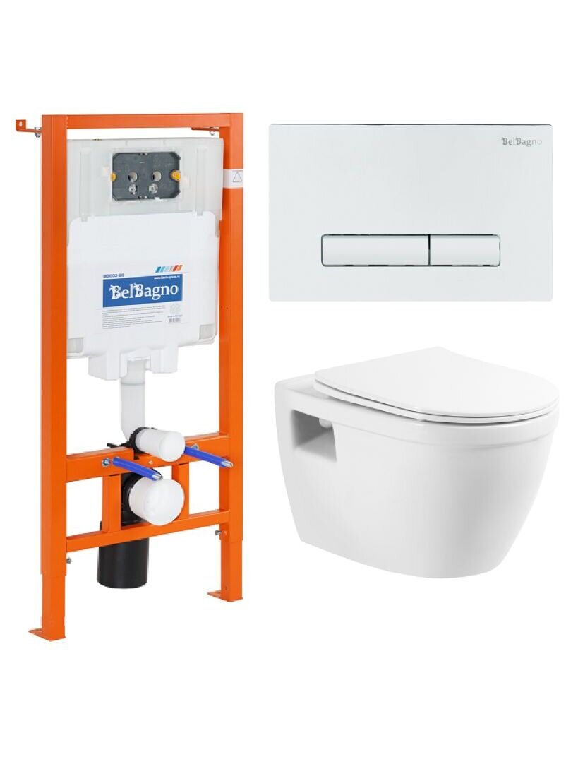 Комплект Унитаз подвесной BelBagno LOTO с сиденьем дюропласт soft close BB070CHR/SC Система инсталляции для унитазов BelBagno BB002-80 Клавиша смыва GENOVA BB018-GV-BIANCO