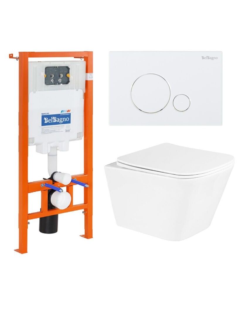 Комплект Унитаз подвесной с сиденьем BelBagno DUE BB3103CHR/SC с сиденьем дюропласт с системой Soft Close BB3103CHR/SC Система инсталляции для унитазов BelBagno BB002-80 Клавиша смыва SFERA BB014-SR-BIANCO
