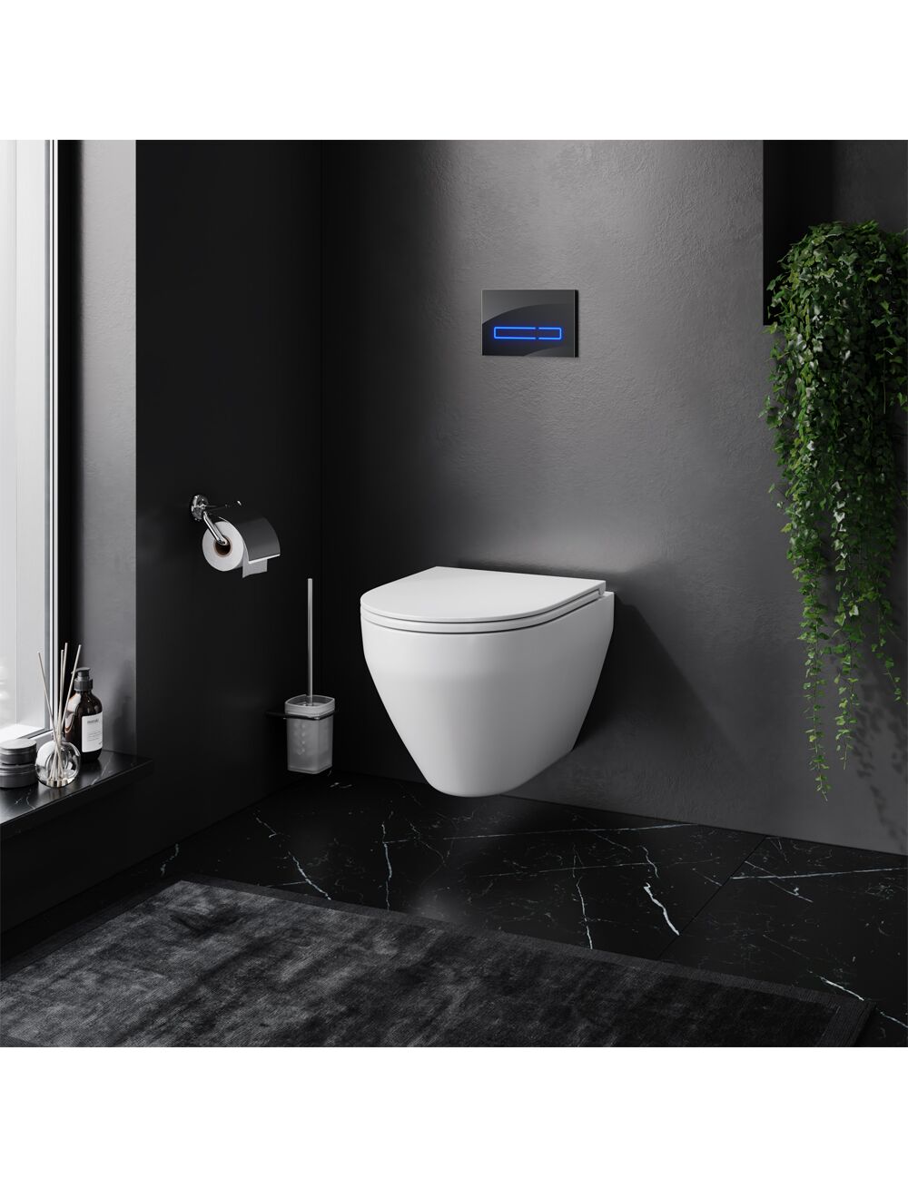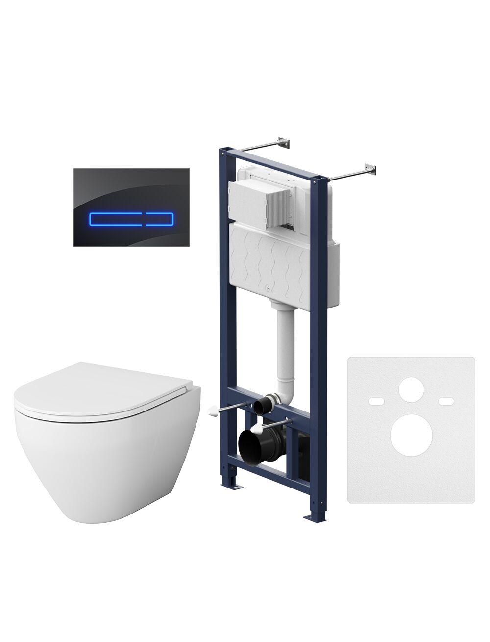 - Полностью готовый к установке комплект: система инсталляции с клавишей, подвесной унитаз сиденьем.