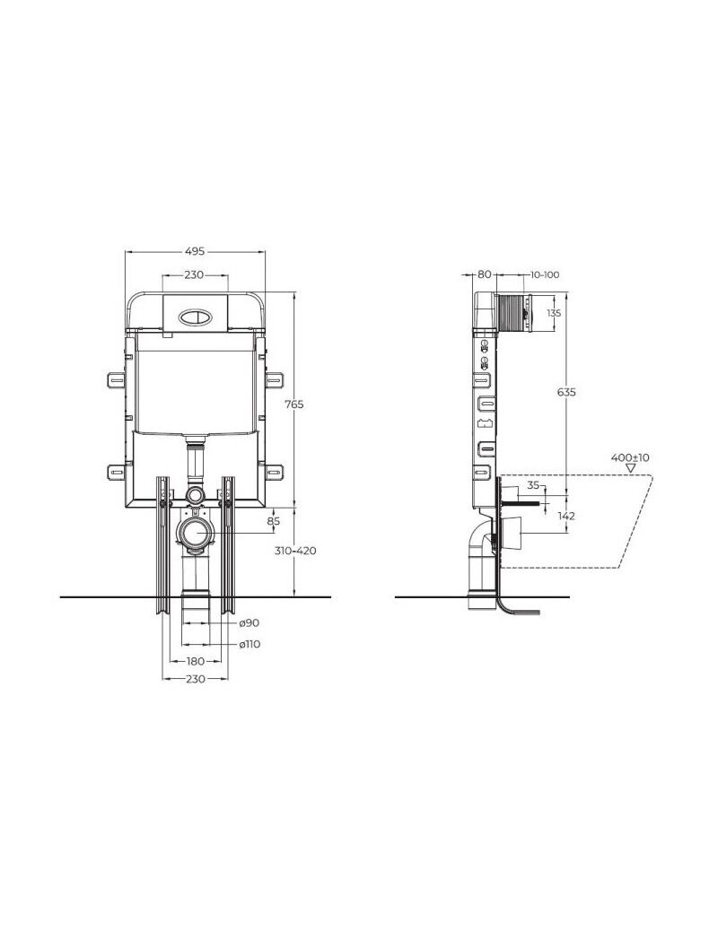 Бачок скрытого монтажа с металлическим каркасом для установки подвесного или приставного унитаза BB020