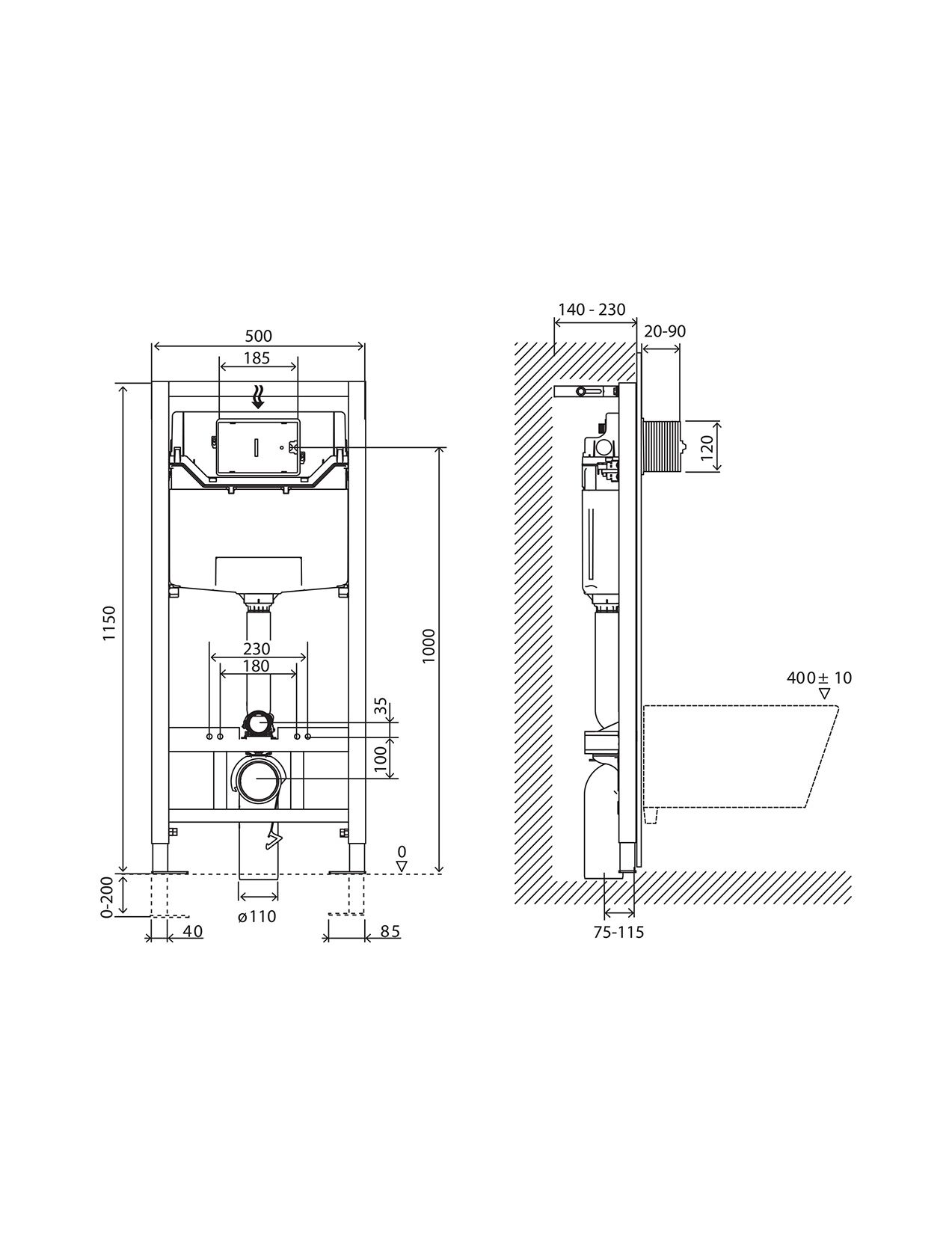 Инсталляция BelBagno BB001-120 для подвесного унитаза без клавиши смыва