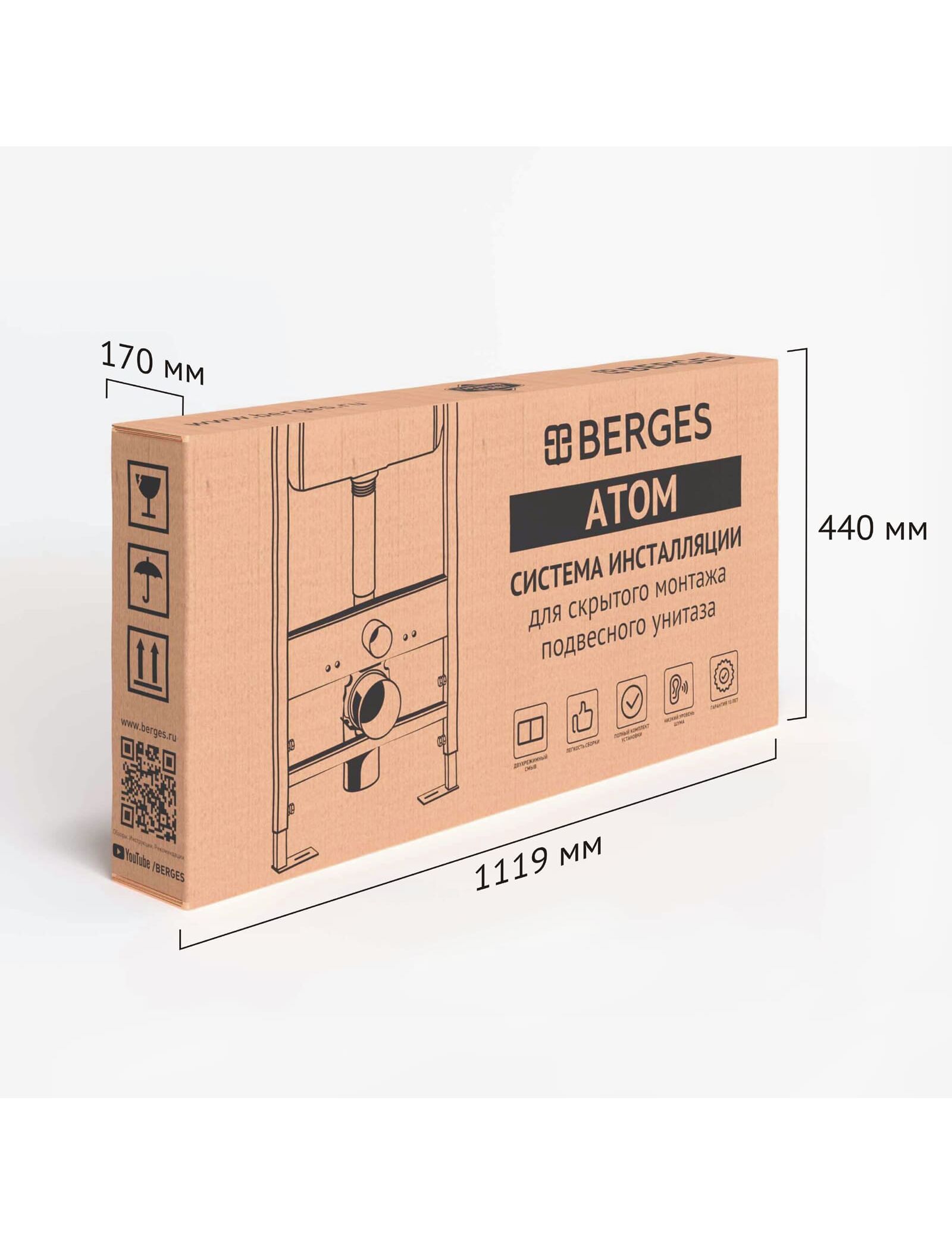 Инсталляция BERGES для скрытого монтажа унитаза АТОМ Line 410 кнопка матовый никель