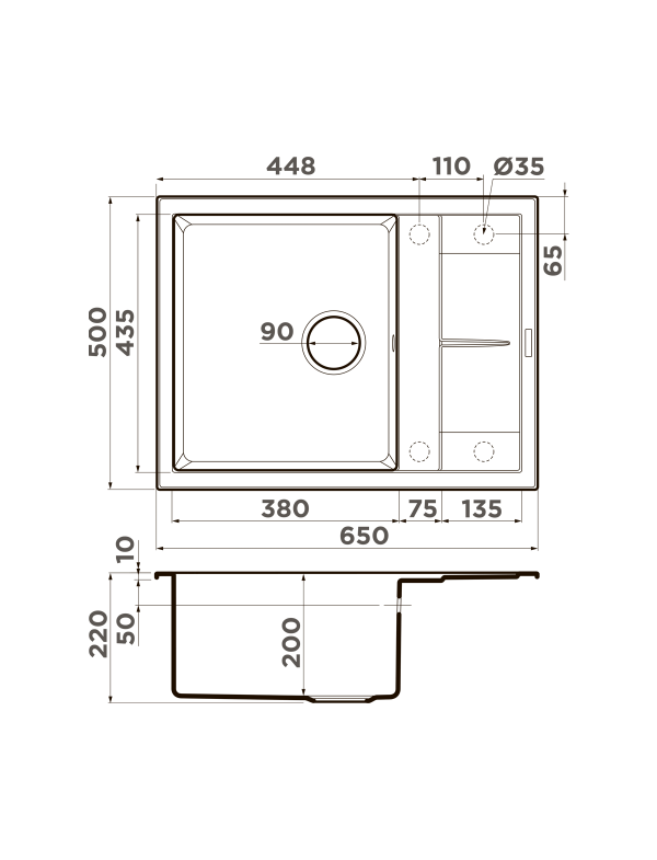 • Материал выдерживает высокие температуры до 280°С (но не стоит ставить на поверхность мойки горячие сковородки и кастрюли, т.к их температура может достигать 500°С);