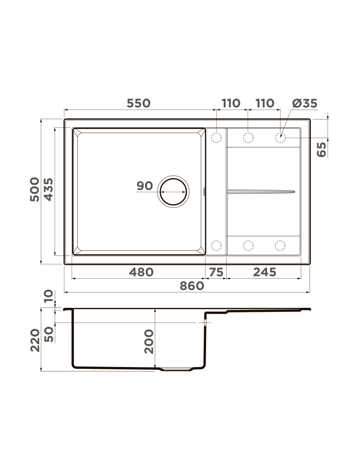 • Материал выдерживает высокие температуры до 280°С (но не стоит ставить на поверхность мойки горячие сковородки и кастрюли, т.к их температура может достигать 500°С);