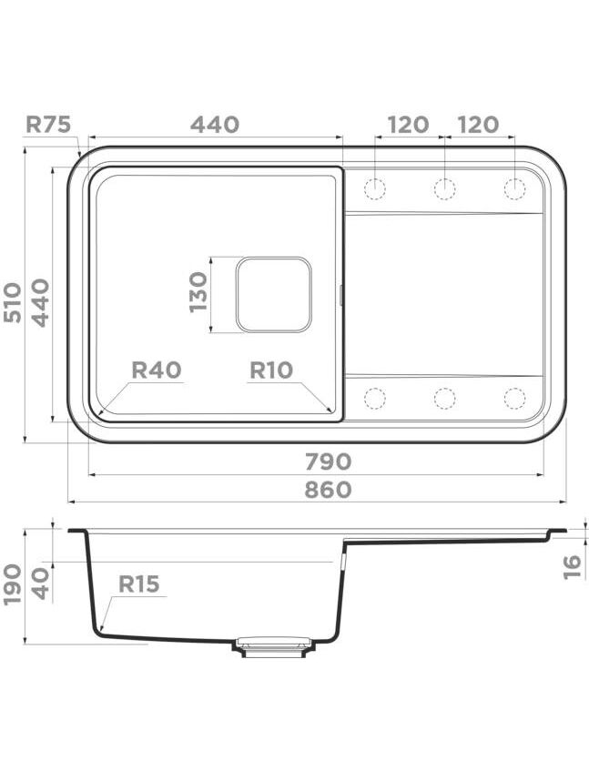 • Материал «Artgranit» выдерживает высокие температуры до 280°С (но не стоит ставить на поверхность мойки горячие сковородки и кастрюли, т.к их температура может достигать 500°С).