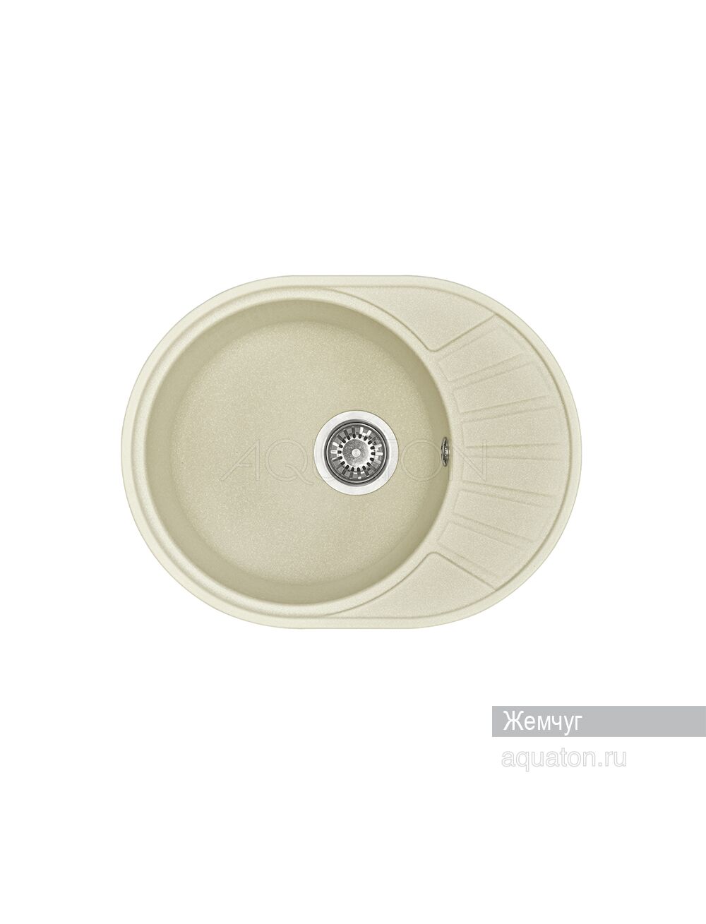 Мойка для кухни из литого мрамора AQUATON Чезана круглая с крылом жемчуг 1A711232CS240