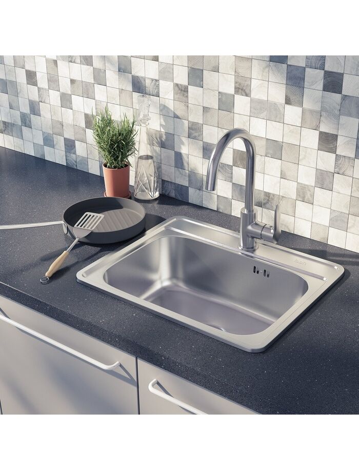 Универсальная мойка Basic – грамотное решение для наполнения эффективного кухонного пространства, отлично подойдет для выполнения повседневных задач на современной кухне. Прямоугольная модель составит комплект с тумбами шириной от 50 см. Матовая сатиновая поверхность мойки Basic гармонирует с различной кухонной утварью и аксессуарами.