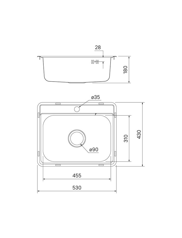 • Все необходимое для монтажа в комплекте: крепеж и шаблон для выреза в столешнице, эластичная уплотнительная лента, которая защитит периметр мойки от протечек. Сифон приобретается отдельно.