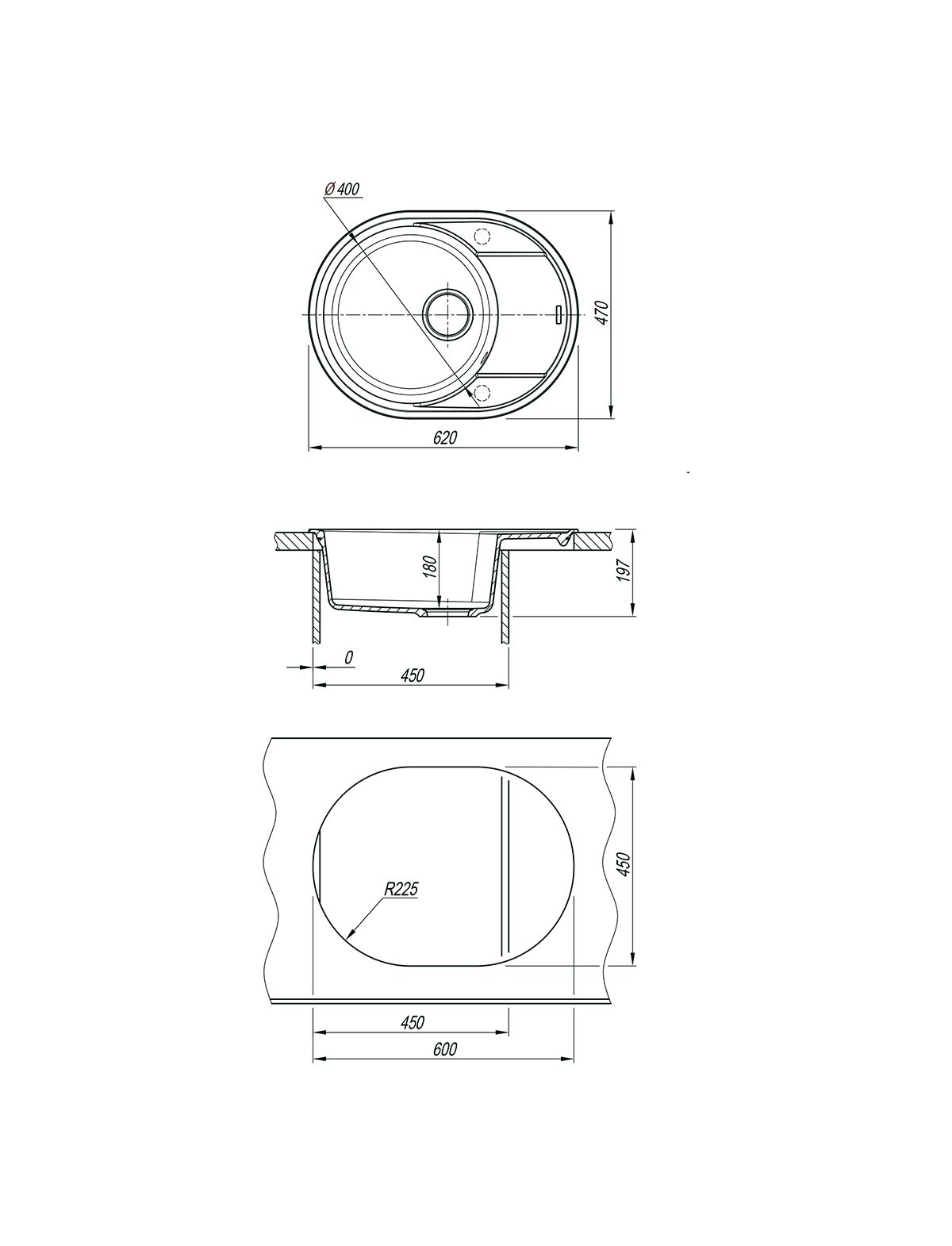 Кухонная мойка Lemark LACHA 620 врезная овальная с крылом из кварцгранита цвет: Антрацит