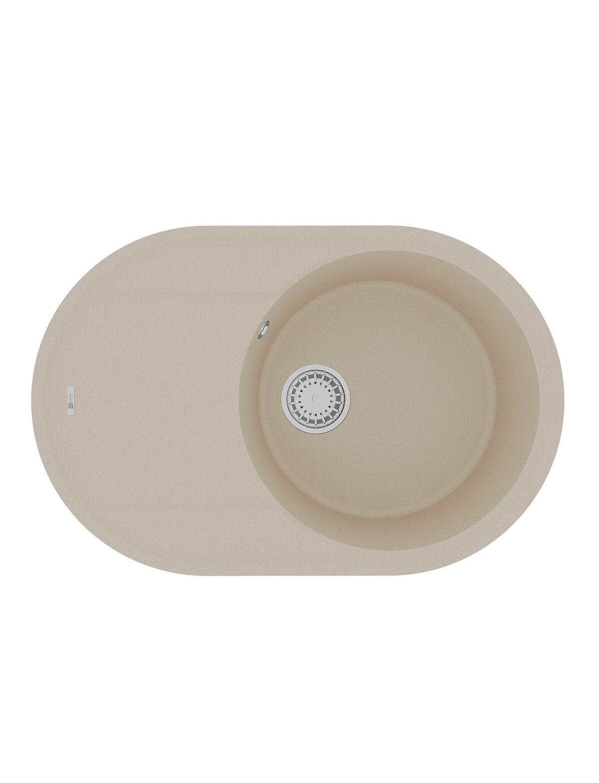 Кухонная мойка Lemark LACHA 760 врезная овальная с крылом из кварцгранита цвет: Бежевый