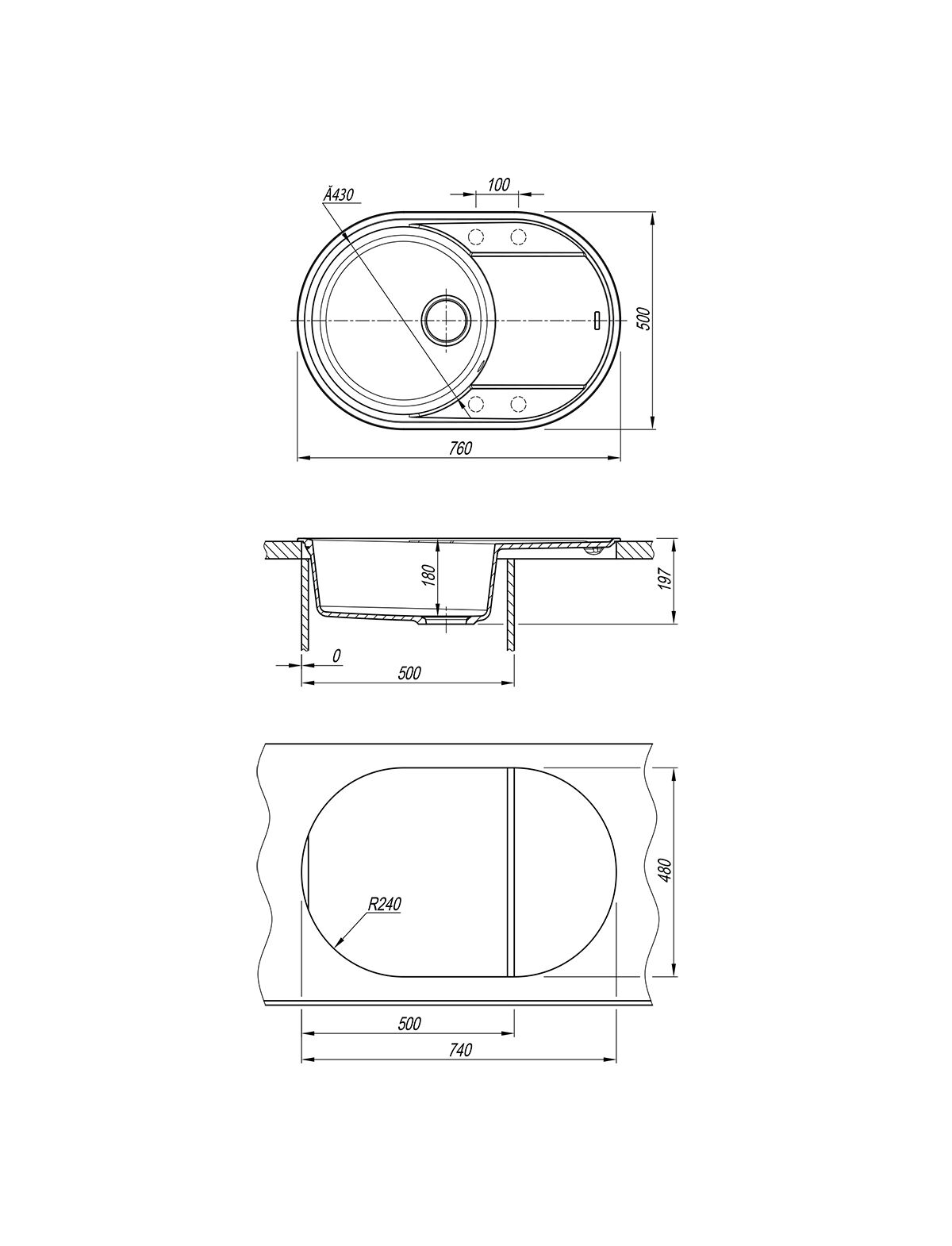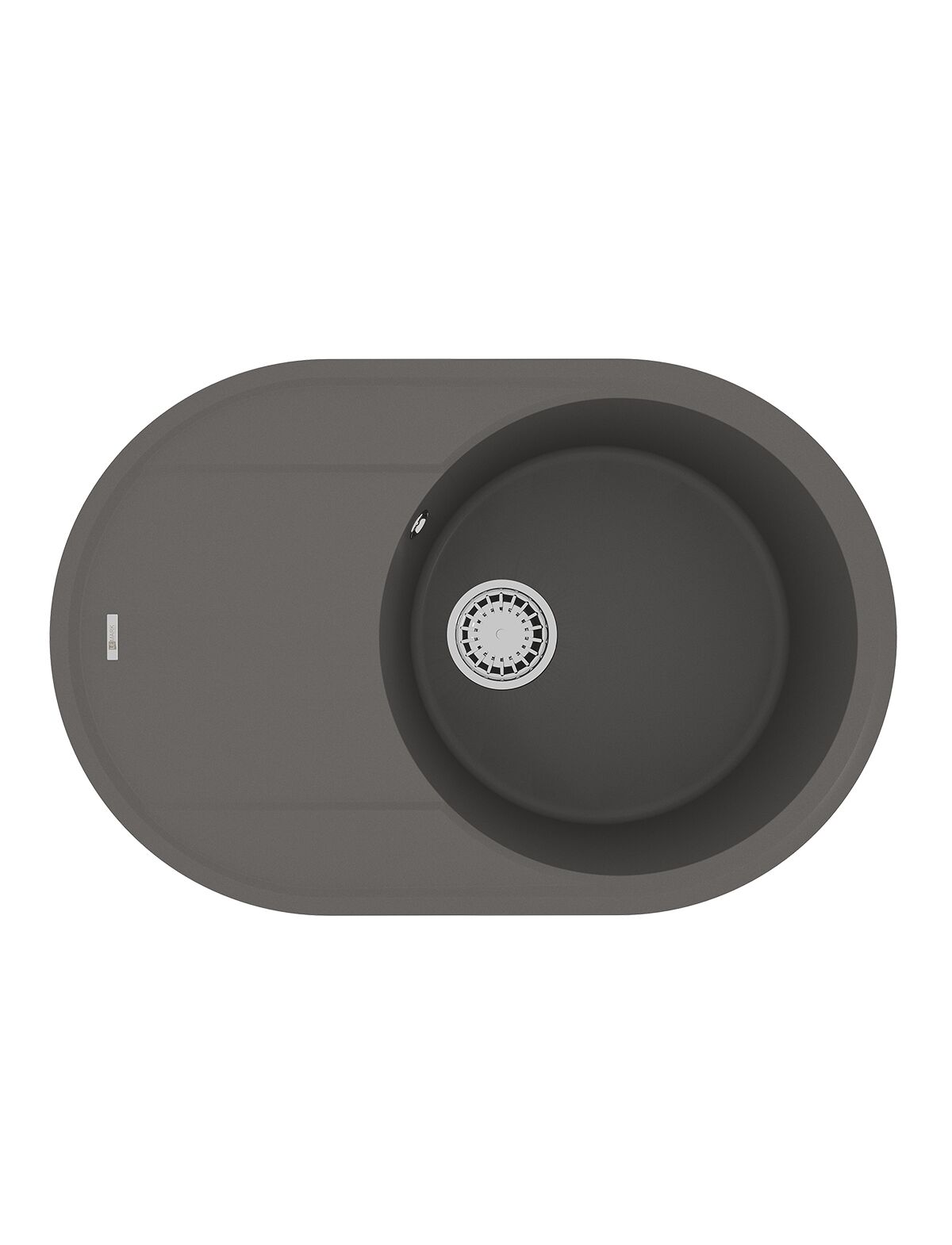 Кухонная мойка Lemark LACHA 760 врезная овальная с крылом из кварцгранита цвет: Серый шёлк