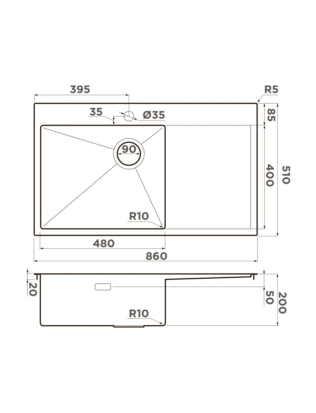 • Кухонная мойка OMOIKIRI изготовлена из высококачественной хромоникелевой нержавеющей стали SUS304. Она содержит 18% хрома и 8% никеля, что обеспечивает её максимальную защиту от коррозии;"• Самый важный показатель у мойки из нержавеющей стали - толщина стали, ведь чем она тоньше, тем менее твердой, надежной и долговечной будет мойка. Для качественной мойки лучше выбирать толщину выше 0,6 мм. Мойки бренда OMOIKIRI имеют толщину от 0,7 до 1,2 мм;