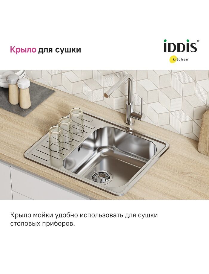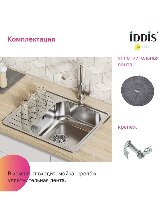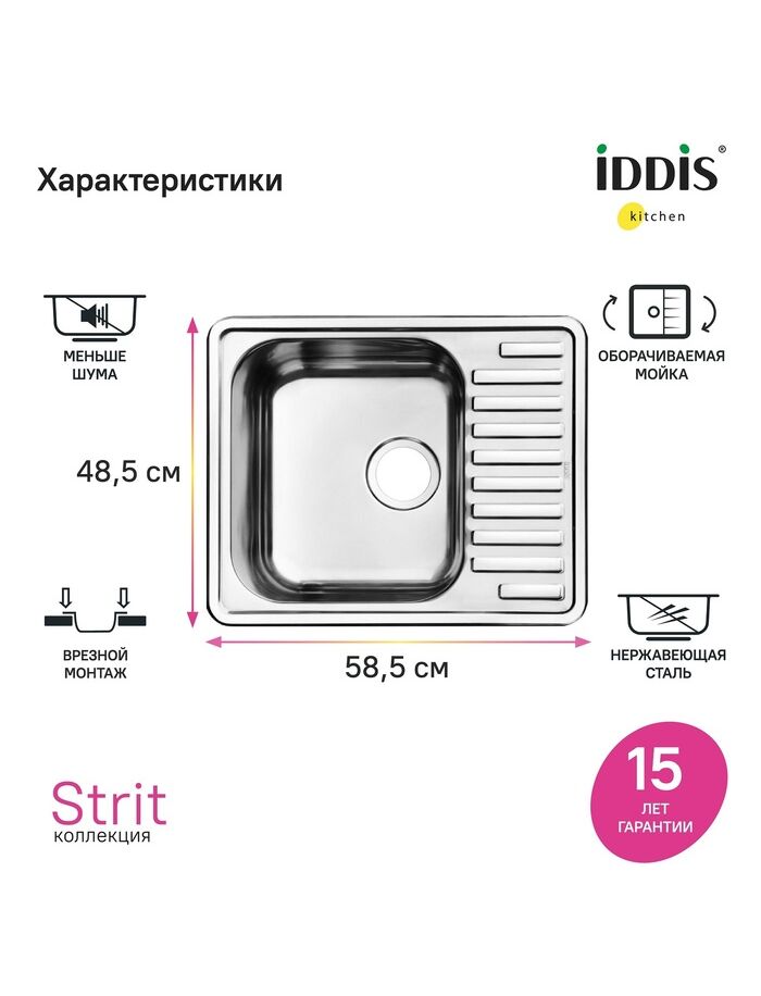 Мойка, нерж. сталь, полир., 585*485, Strit S, IDDIS, STR58PDi77