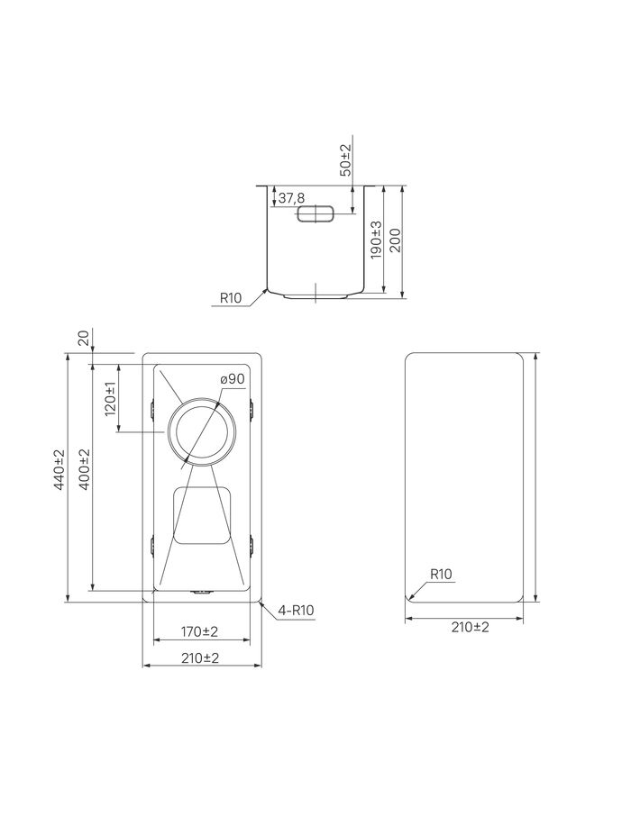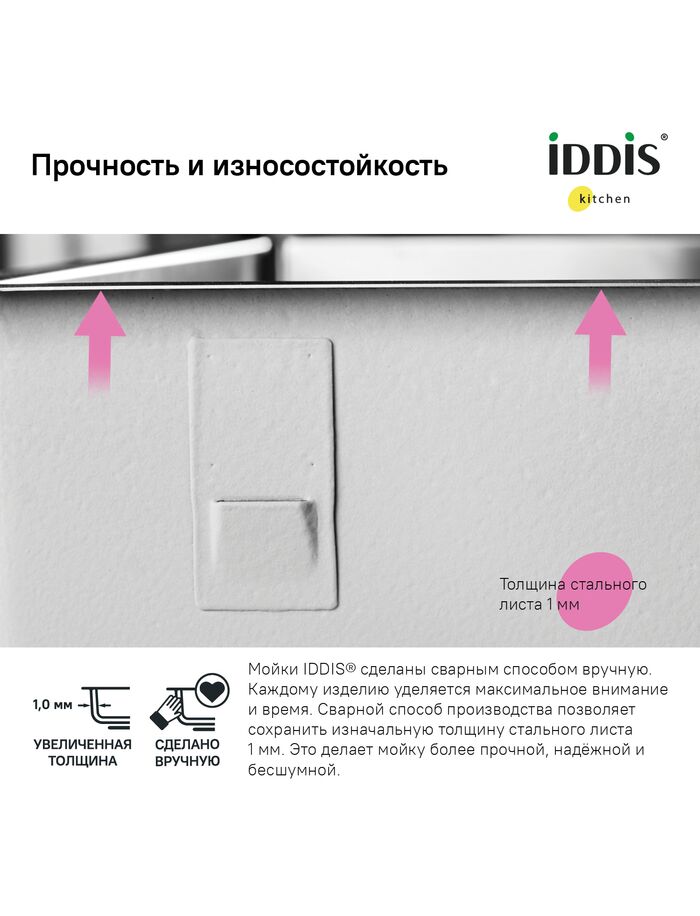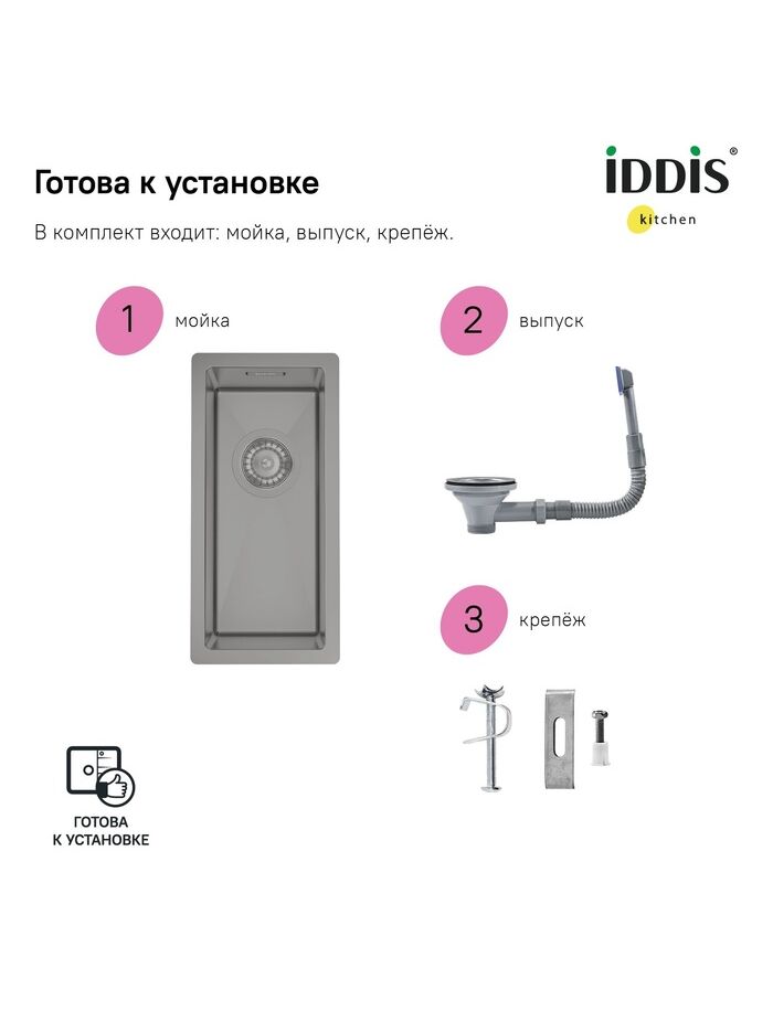 Мойка, нерж. сталь, универсального монтажа, графит, 210*440, Edifice, IDDIS, EDI21G0i77