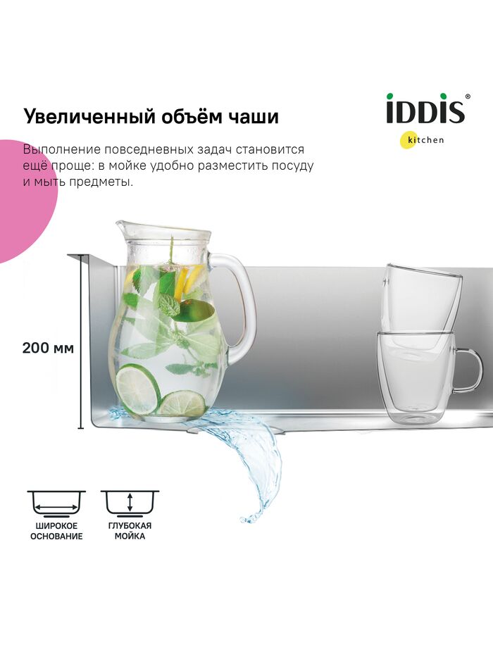 Мойка, нерж.сталь, универсального монтажа, сатин, 210*440, Edifice, IDDIS, EDI21S0i77