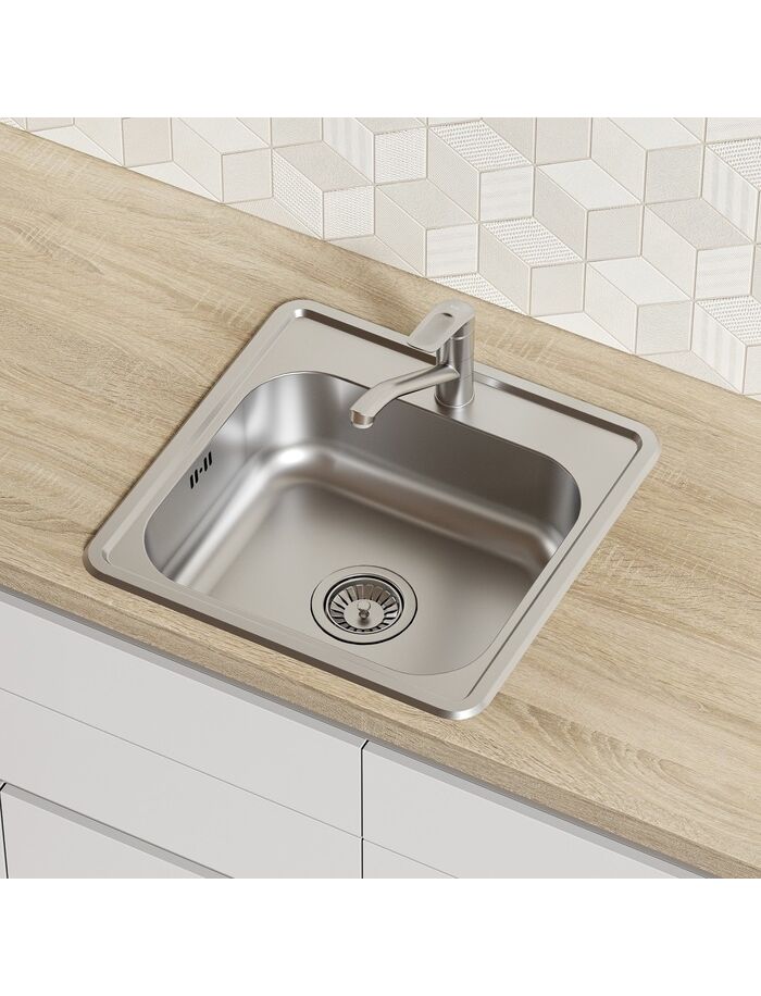 Квадратная мойка из нержавеющей стали с сатиновым покрытием с сифоном в комплекте – продуманное решение, готовое к использованию.