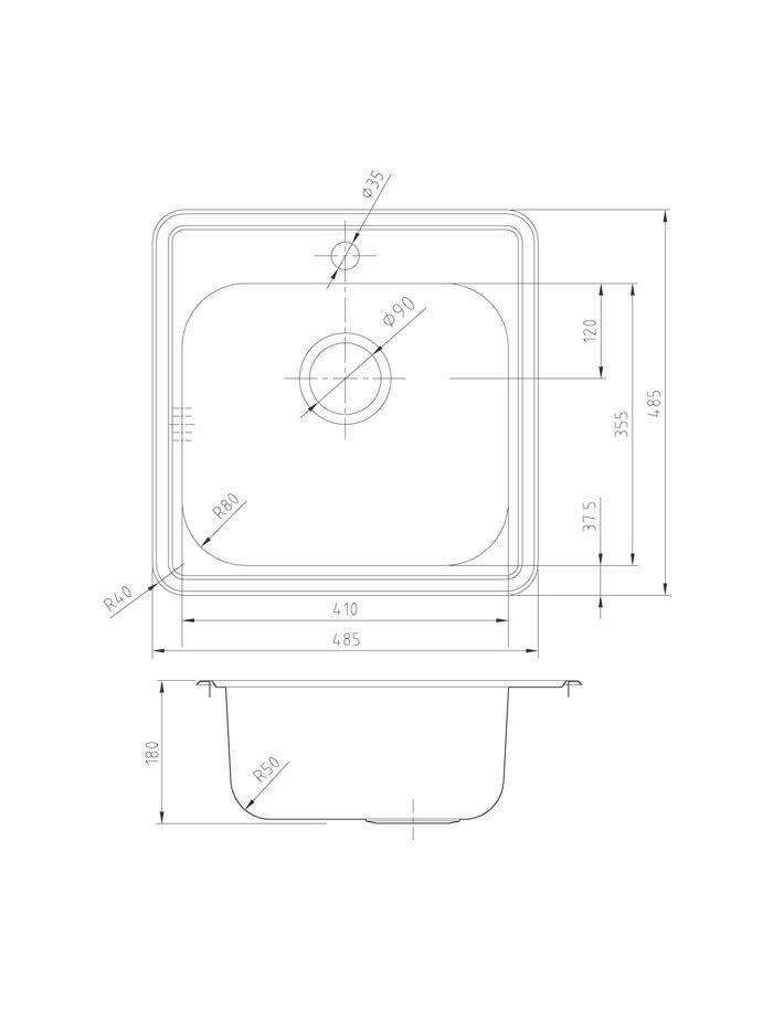 Мойка с сифоном арт. S11UPS0i84, нерж. сталь, шелк, 485*485, Strit S, IDDIS, STR48S0i77S