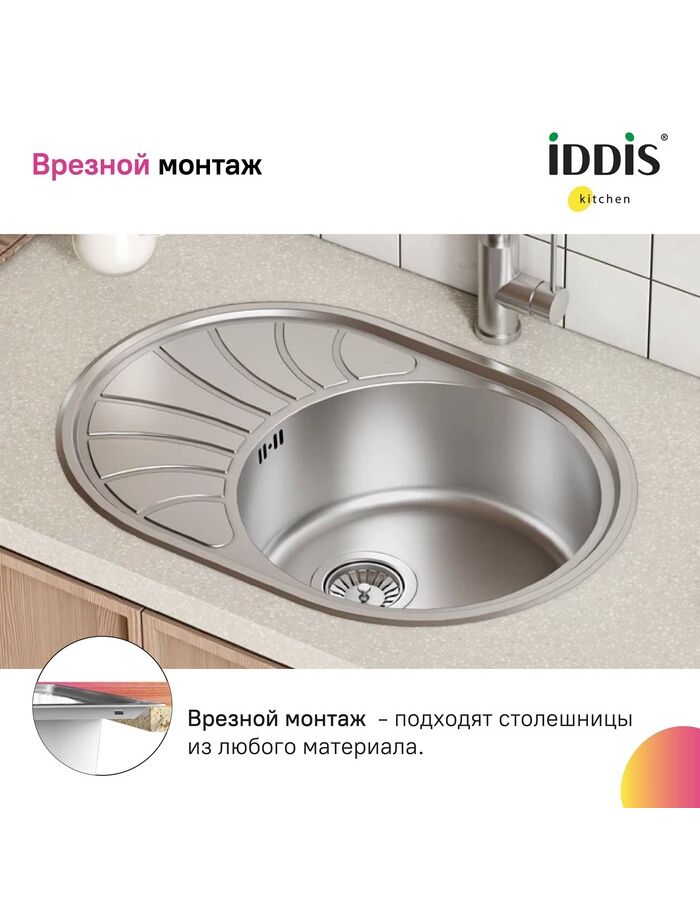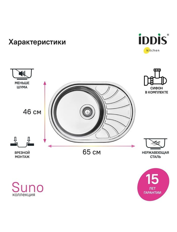 Мойка с сифоном арт. S11UPS0i84, нерж. сталь, шелк, 650*460, Suno S, IDDIS, SUN65SDi77S