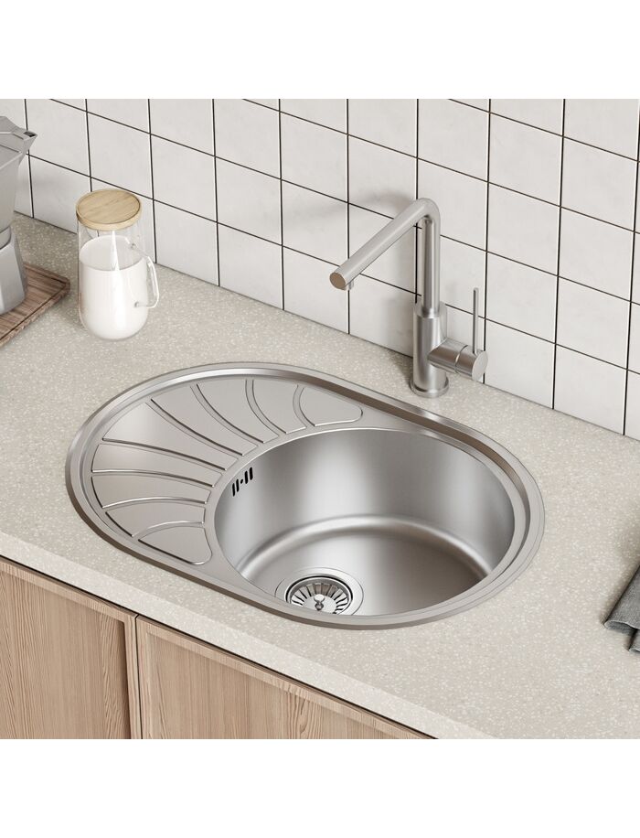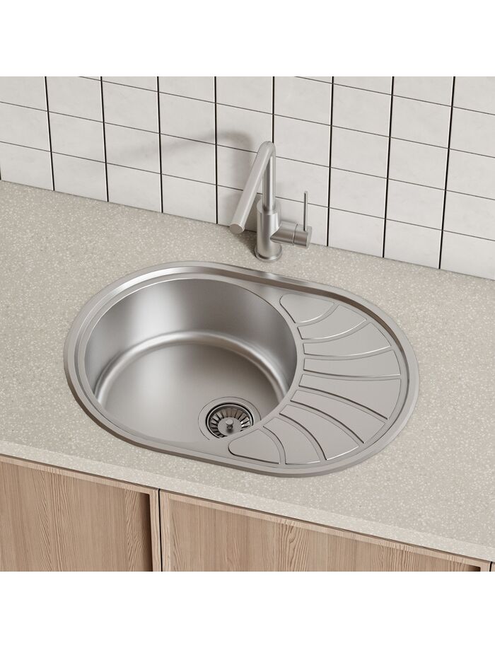 Оборачиваемая мойка с крылом из нержавеющей стали с сатиновым покрытием с сифоном в комплекте – продуманное решение, готовое к использованию.