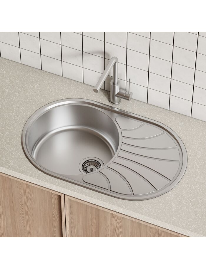 Оборачиваемая мойка с крылом из нержавеющей стали с сатиновым покрытием с сифоном в комплекте – продуманное решение, готовое к использованию.