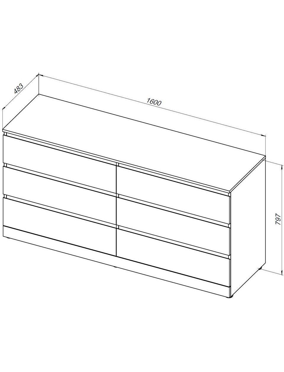 Комод Aquanet Сканди 1600x480 Дуб крафт (6 ящиков)