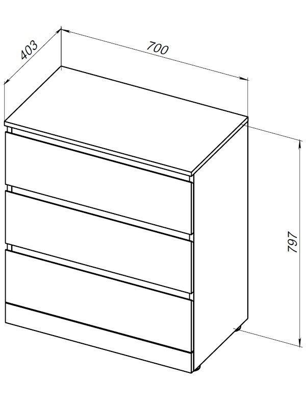 Комод Aquanet Сканди 700x400 Дуб крафт (3 ящика)