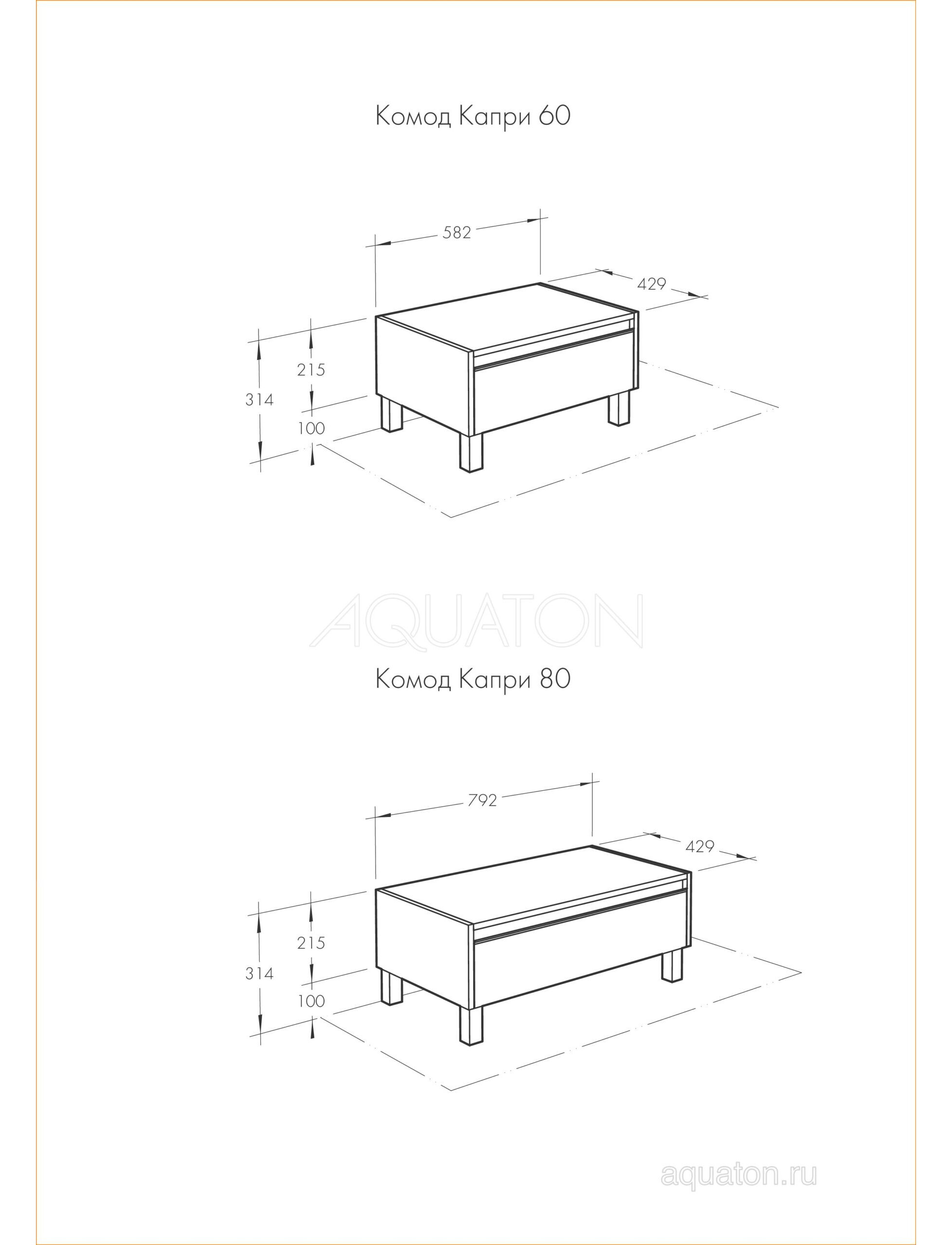 Комод может быть установлен как непосредственно под тумбой, так и со смещением влево или вправо.