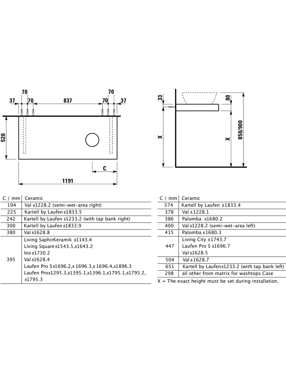 Столешница под раковину Laufen Case 1200x520 без отверстий, дуб антрацитовый 4.0514.0.075.548.1