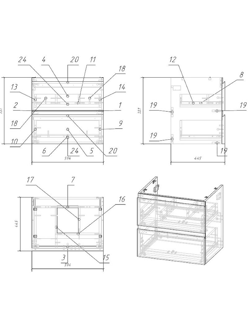 (SB-SZ-MOD60-BL/Wh) Тумба п/рак. под столешницу подвесная: MODUO 60, белая, Сорт1