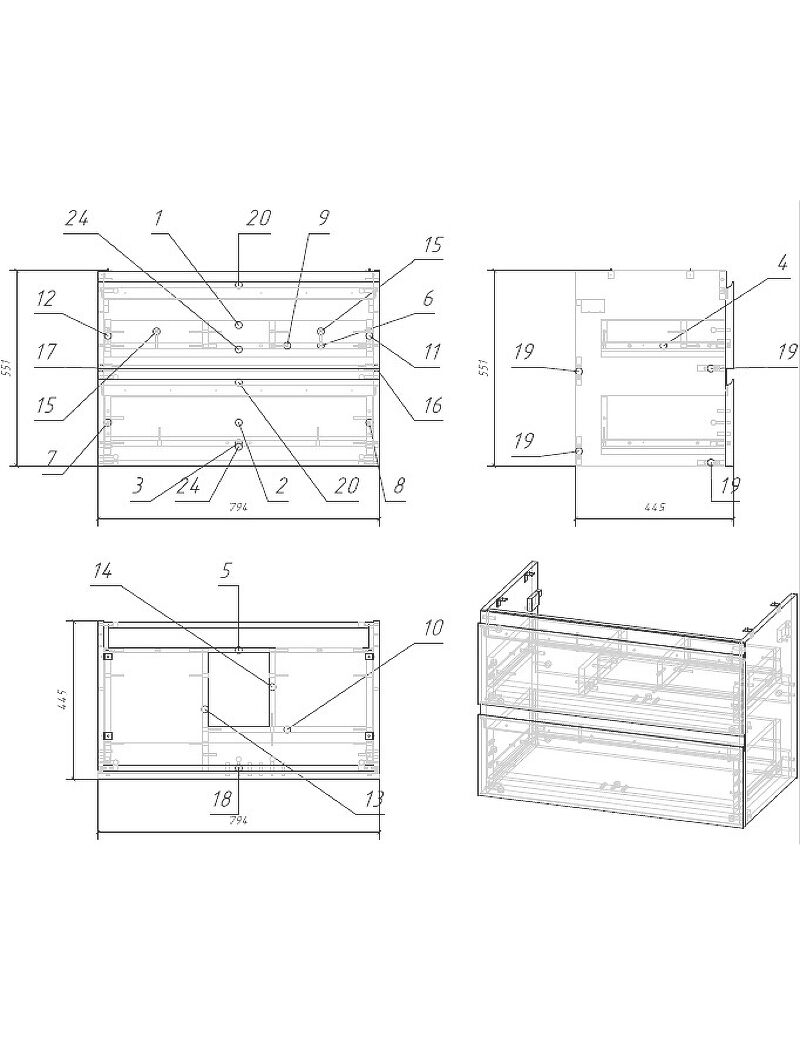 (SB-SZ-MOD80-BL/Wh) Тумба п/рак. под столешницу подвесная: MODUO 80, белая, Сорт1