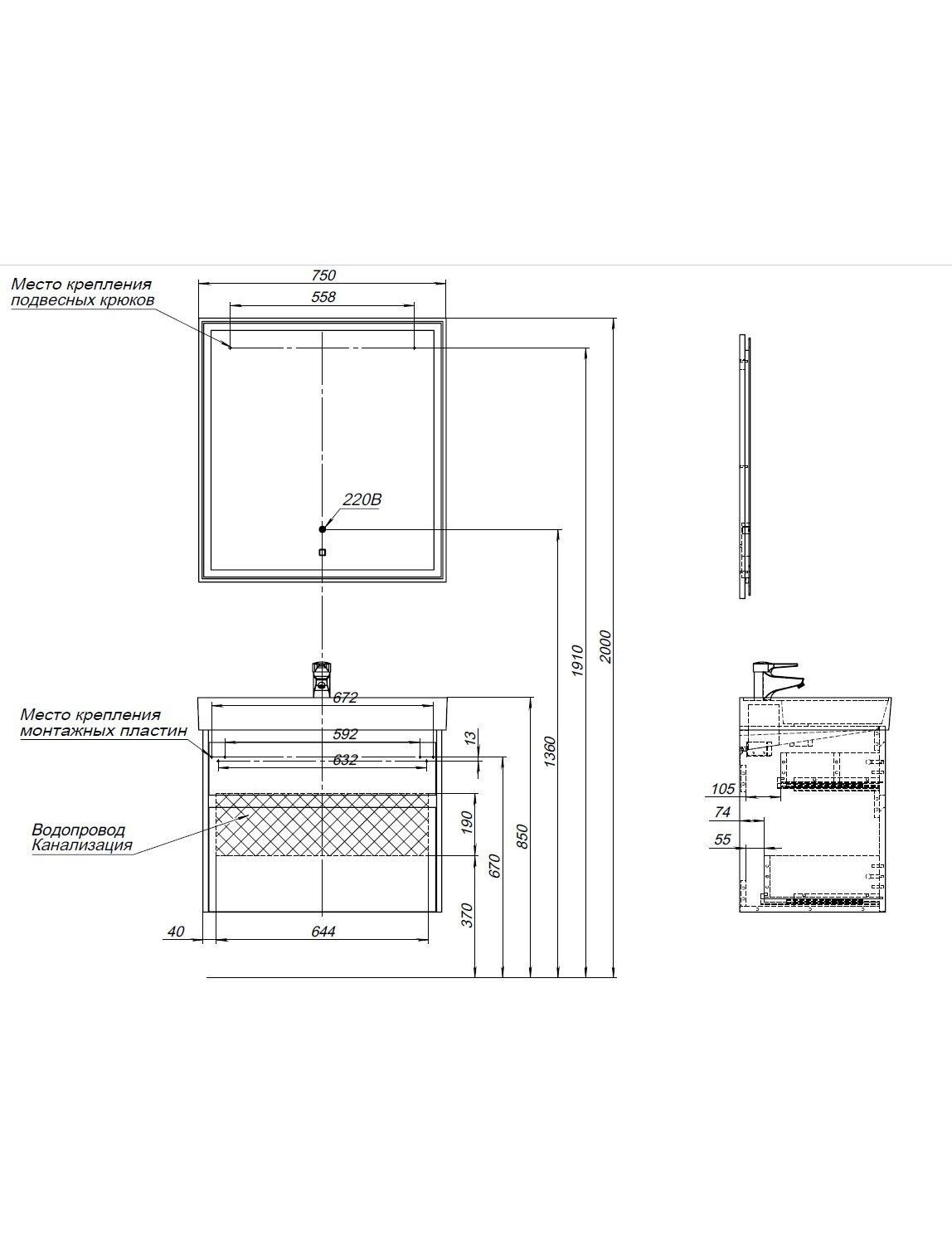 Тумба под раковину Aquanet Nova Lite 75 дуб черный (2 ящика)