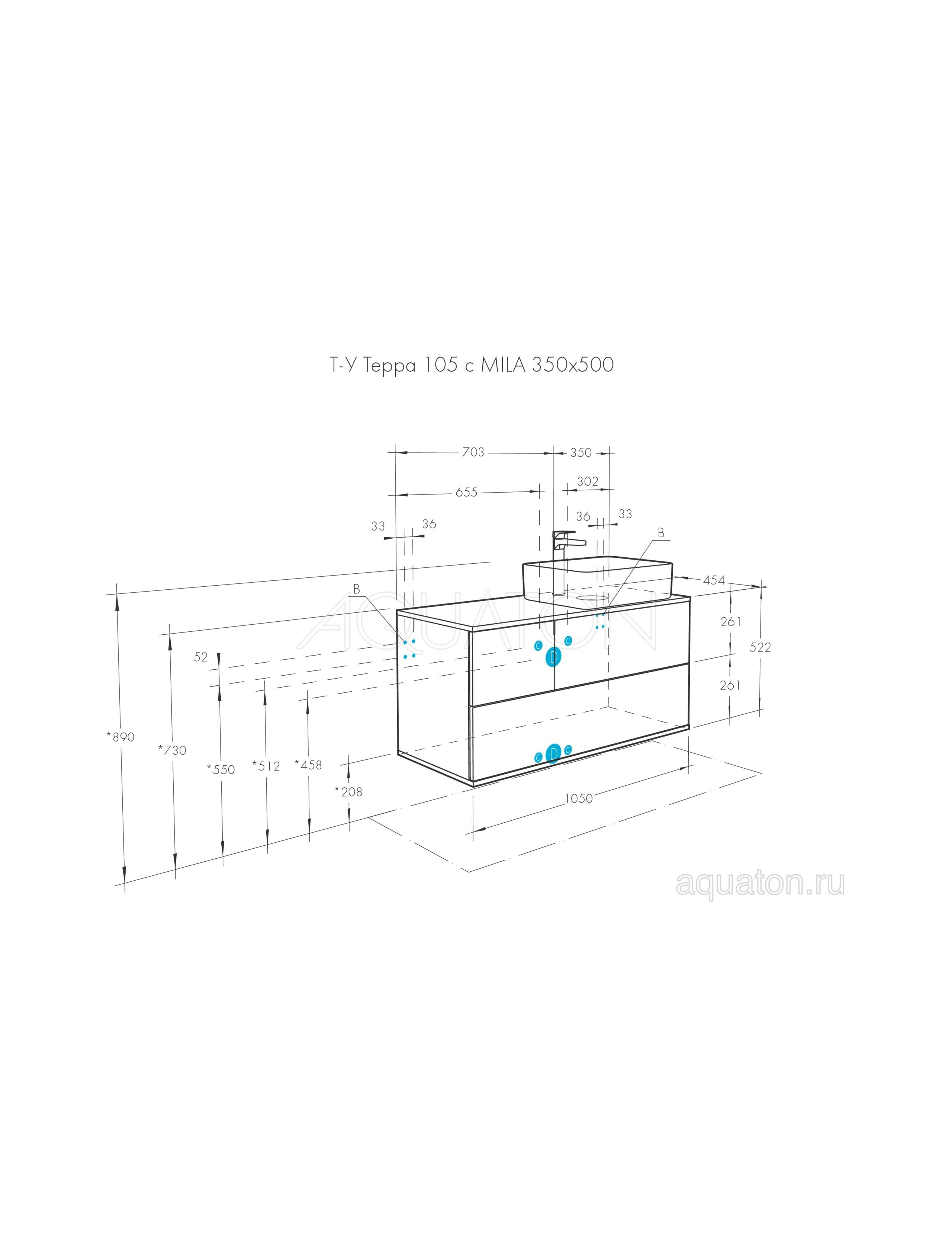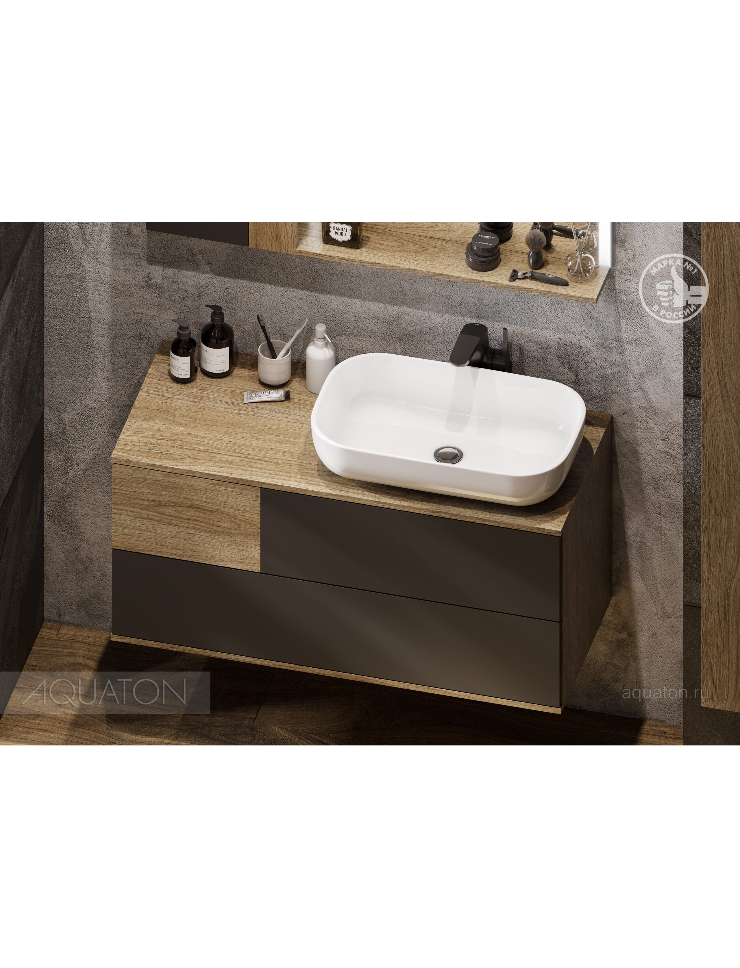 Тумба под раковину AQUATON Терра 105 дуб кантри, антрацит 1A246901TEKA0