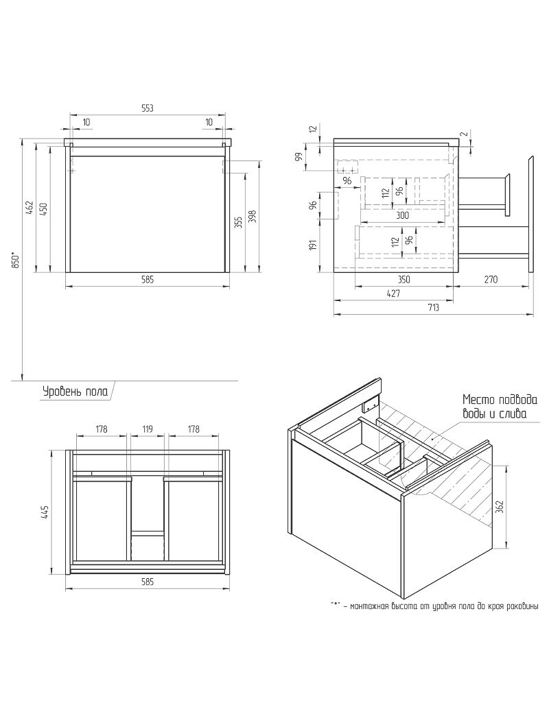 Тумба под раковину подвесная GRANDE 60 для COMO 60 черный орех Cersanit