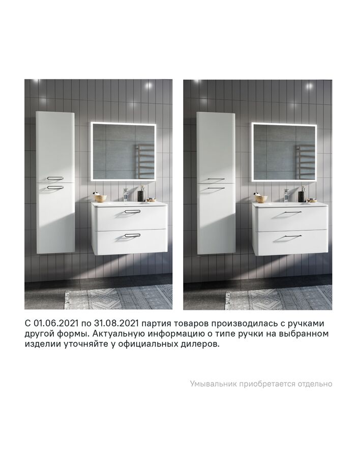 Тумба подвесная, белая, 80 см, Brick, IDDIS, BRI80W0i95. Подходит умывальник: 0108000i28