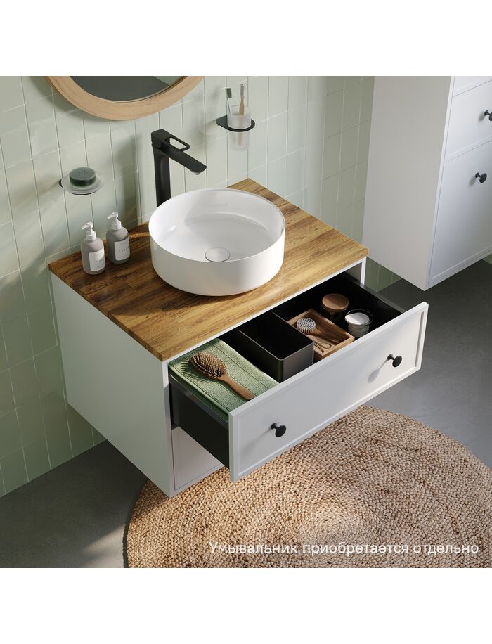 Тумба подвесная, под столешницу, 70 см, белый матовый, Torr, IDDIS, TOR70WBi95