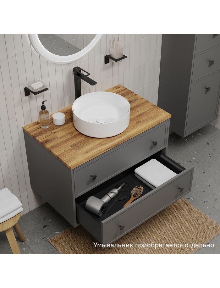 Тумба подвесная, под столешницу, 80 см, темно-серый, Torr, IDDIS, TOR80DBi95