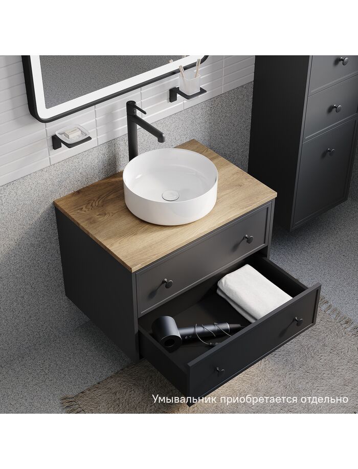 Тумба подвесная, со столешницей МДФ, дуб верона, 70 см, темно-серый, Torr, IDDIS, TOR70DVi95K подход. столеш-ца OPH70BVi89