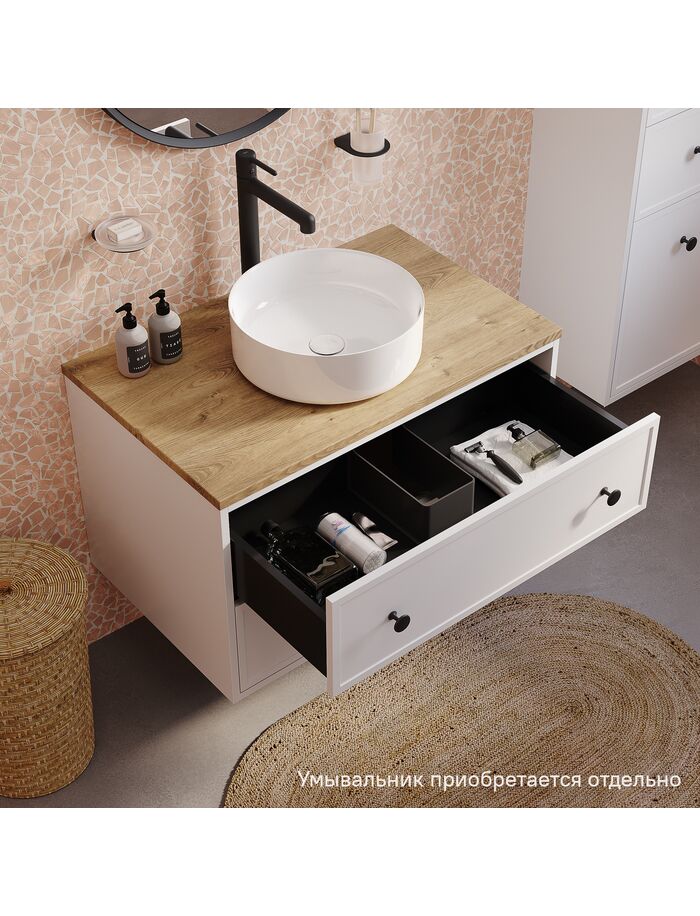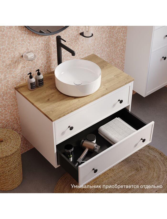 Тумба подвесная, со столешницей МДФ, дуб верона, 80 см, белый матовый, Torr, IDDIS, TOR80WVi95K подход. столеш-ца. OPH80BVi89