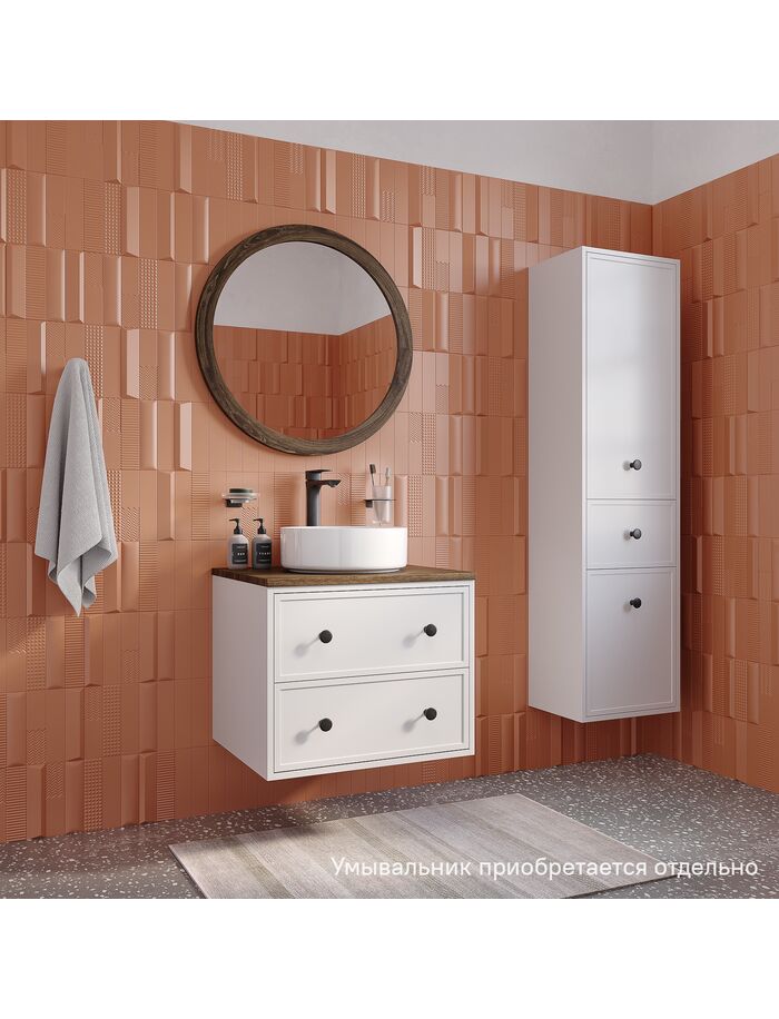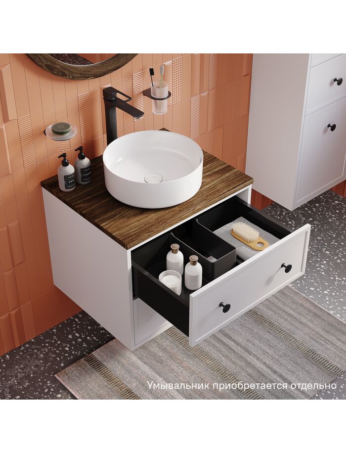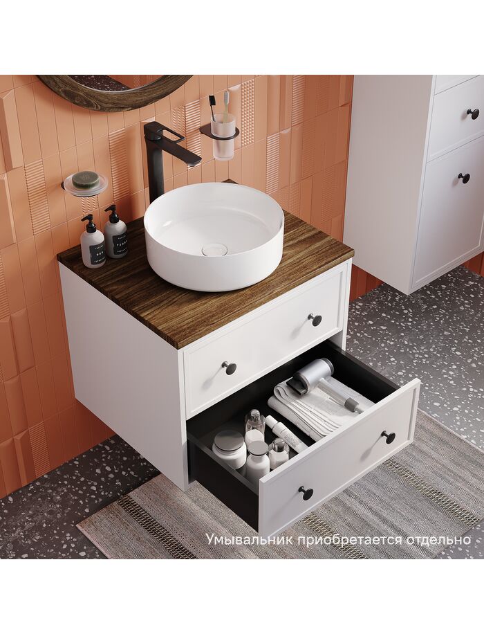 Тумба подвесная, со столешницей МДФ, макадамия орех, 60 см, белый матовый, Torr, IDDIS, TOR60WMi95K подход. столеш-ца OPH60BMi89