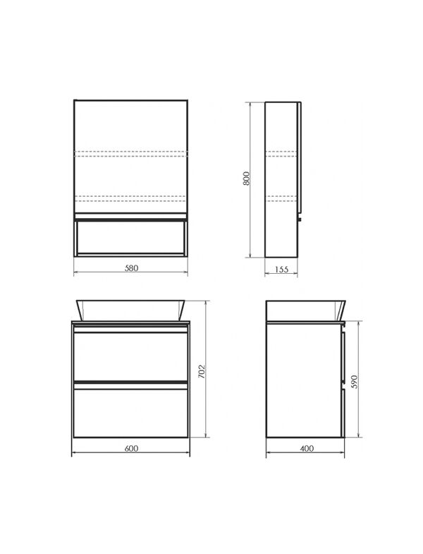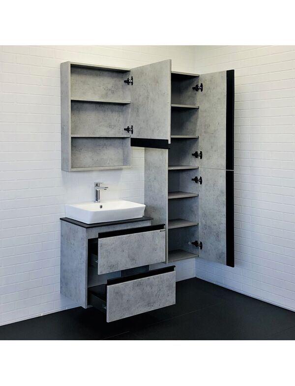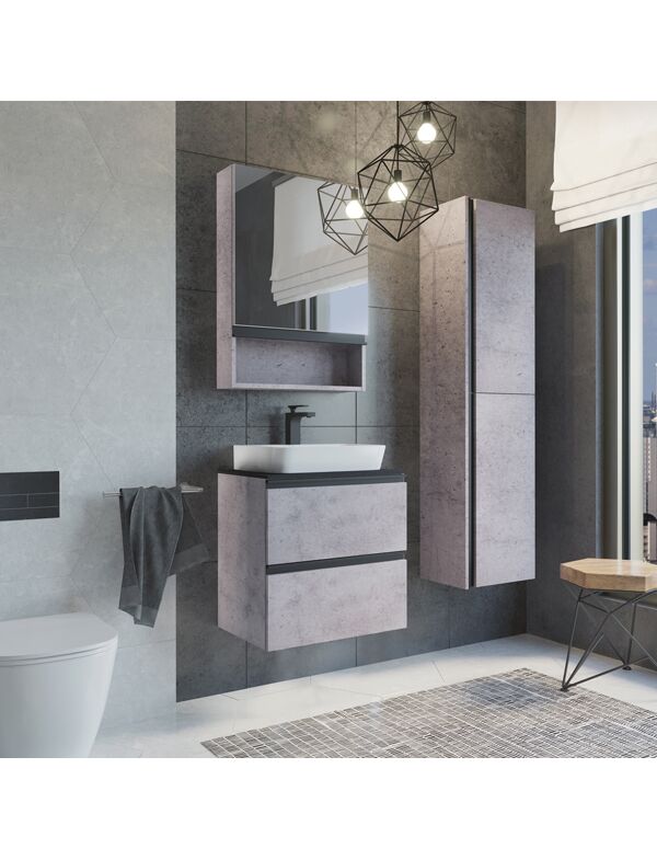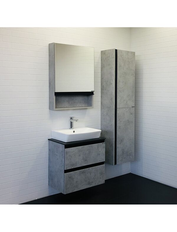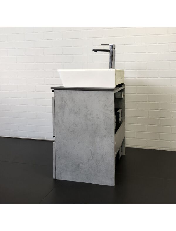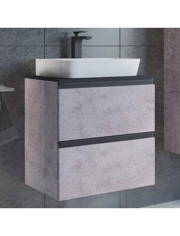 COMFORTY. Тумба-умывальник "Эдинбург-60-2" бетон светлый с черной столешницей, с раковиной COMFORTY 9055RA-50