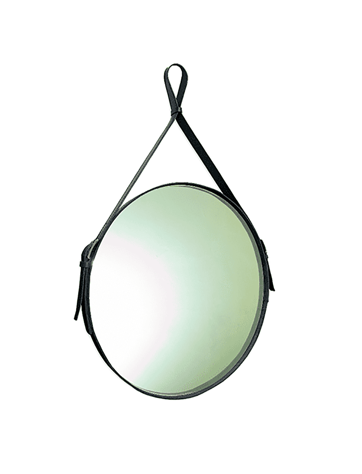 Зеркало изготовлено из зеркального полотна толщиной 4 мм. Рама зеркала выполнена из натуральной кожи.
