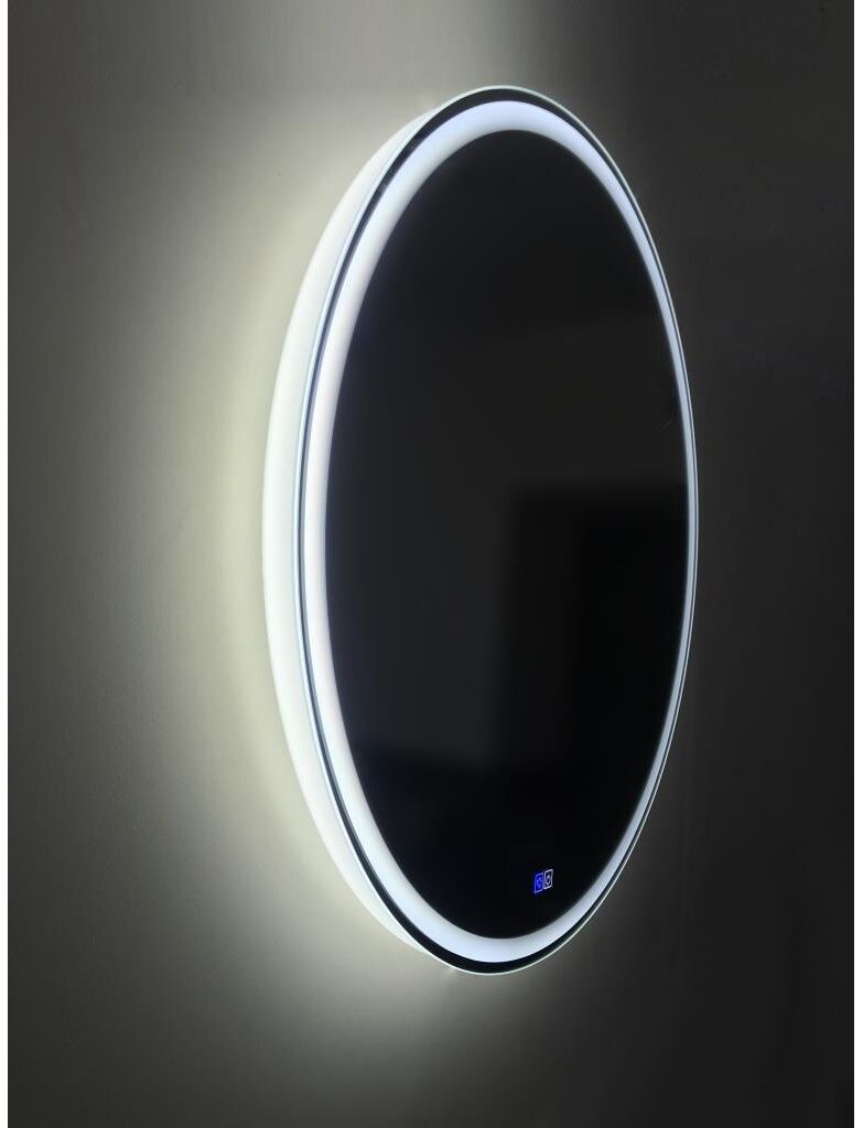 Декоративная светодиодная подсветка по всему периметру зеркала. Зеркало оборудовано блютуз-модулем с микрофоном и аккустическими системами и двухсенсорным блоком управления.