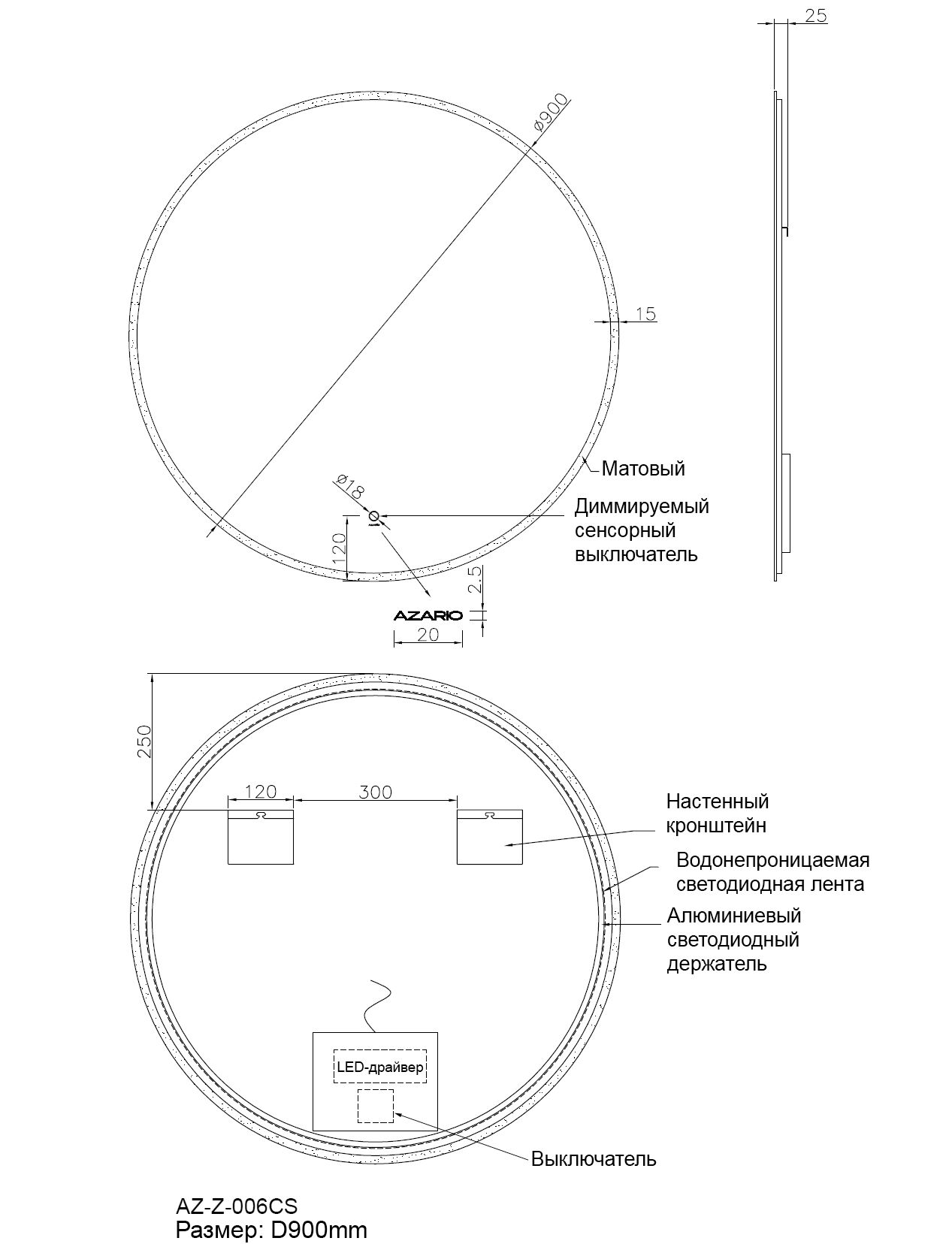 Зеркало для ванной Azario D900 AZ-Z-006CS